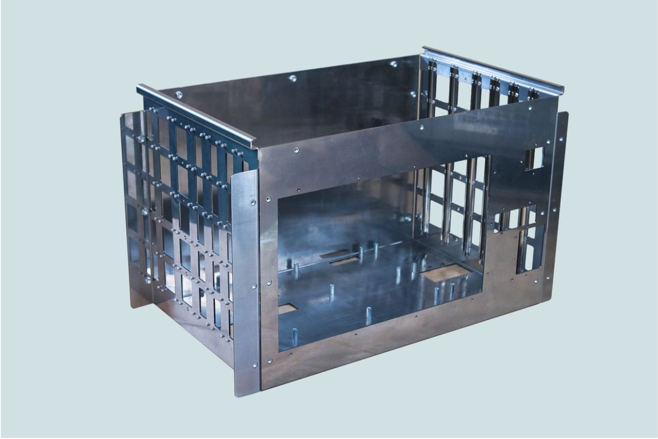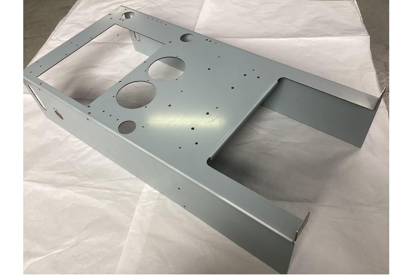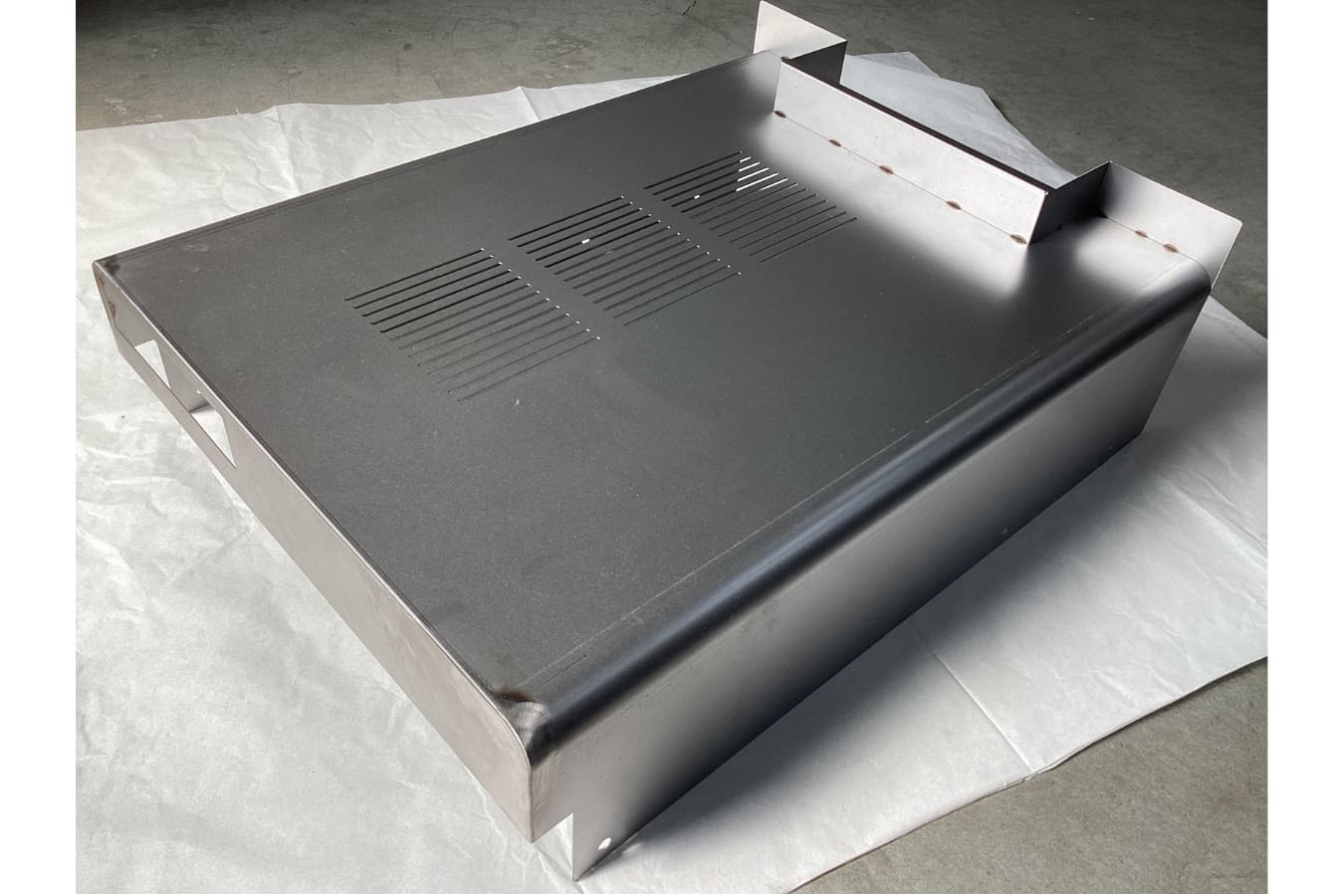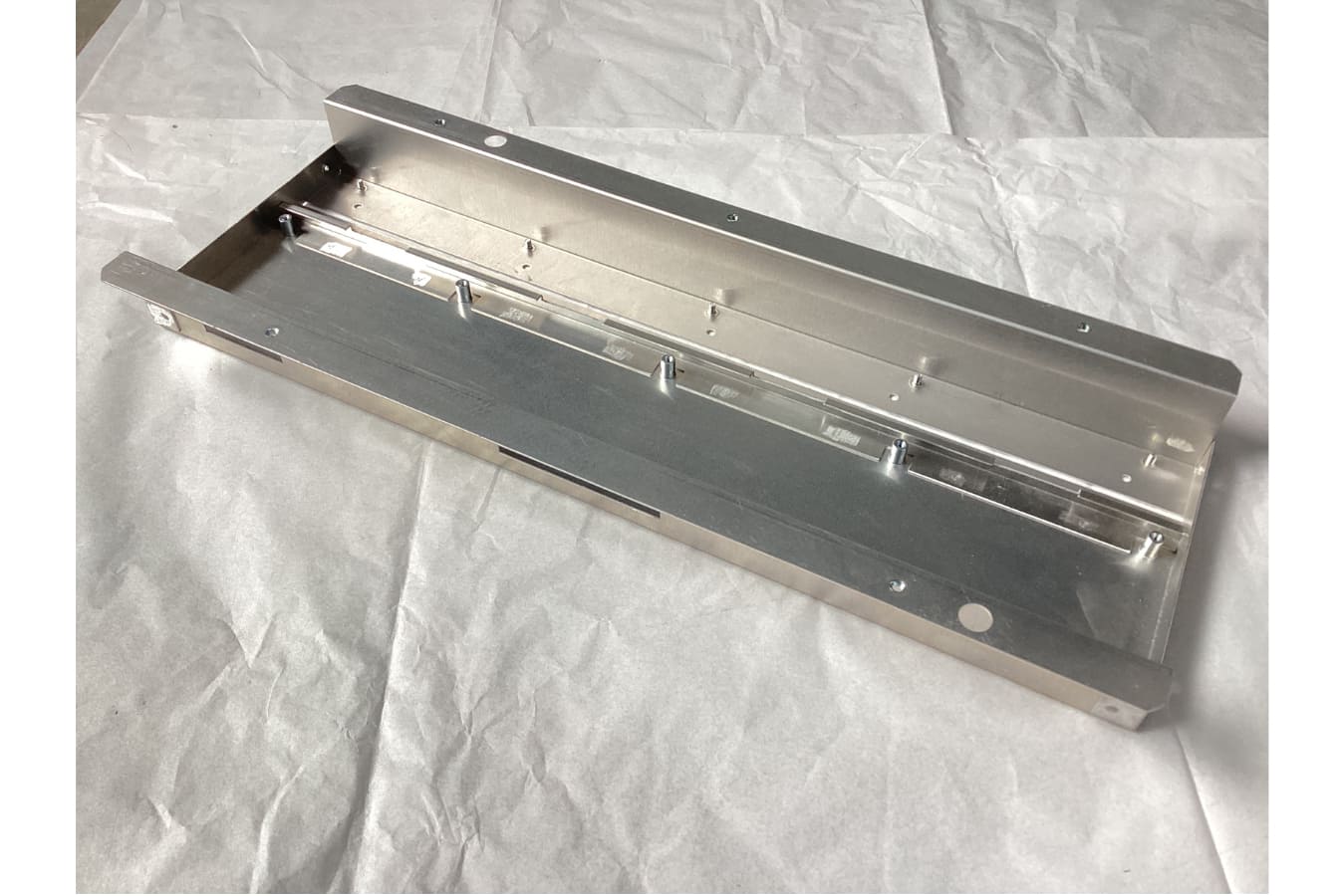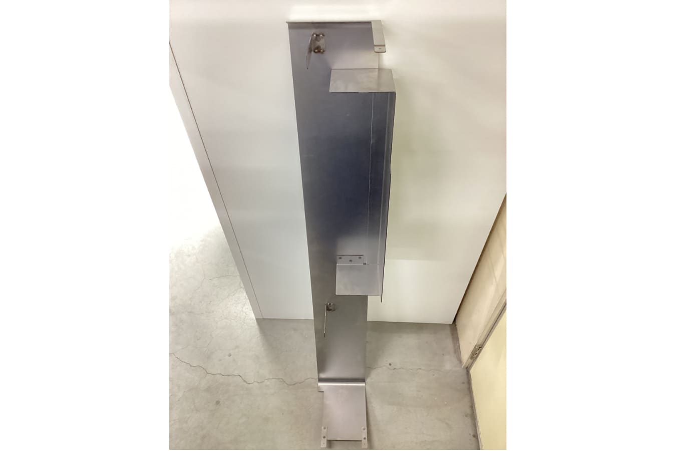 鉄素材の3.2mm厚板をレーザー加工、ベンダー加工、溶接、鍍金処理を組み合わせることで、高い...