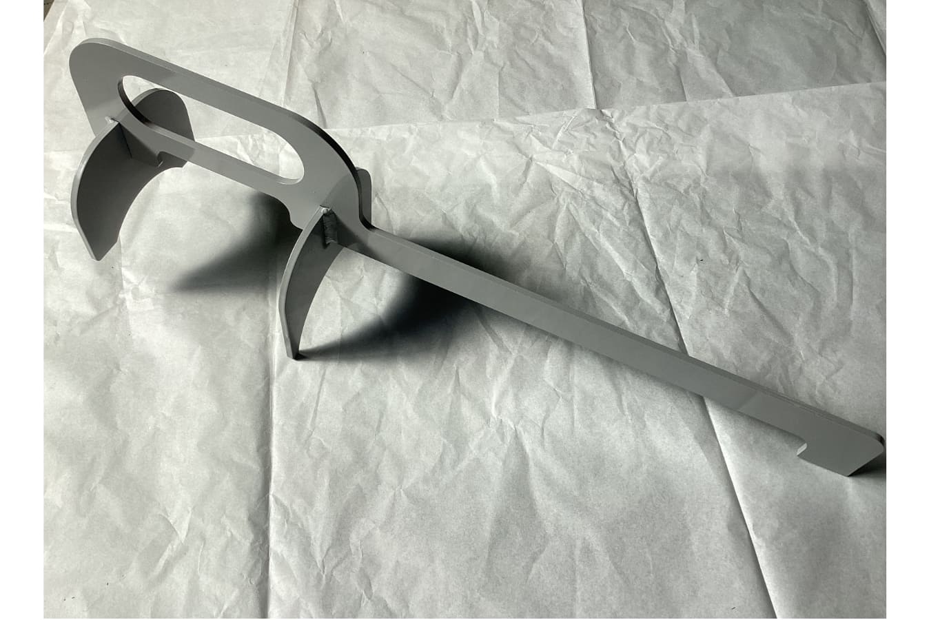 本製品は、鉄製の丸棒をタレパン、ベンダー、溶接、鍍金処理を組み合わせることで製作された、頑丈で多用途なガードです。