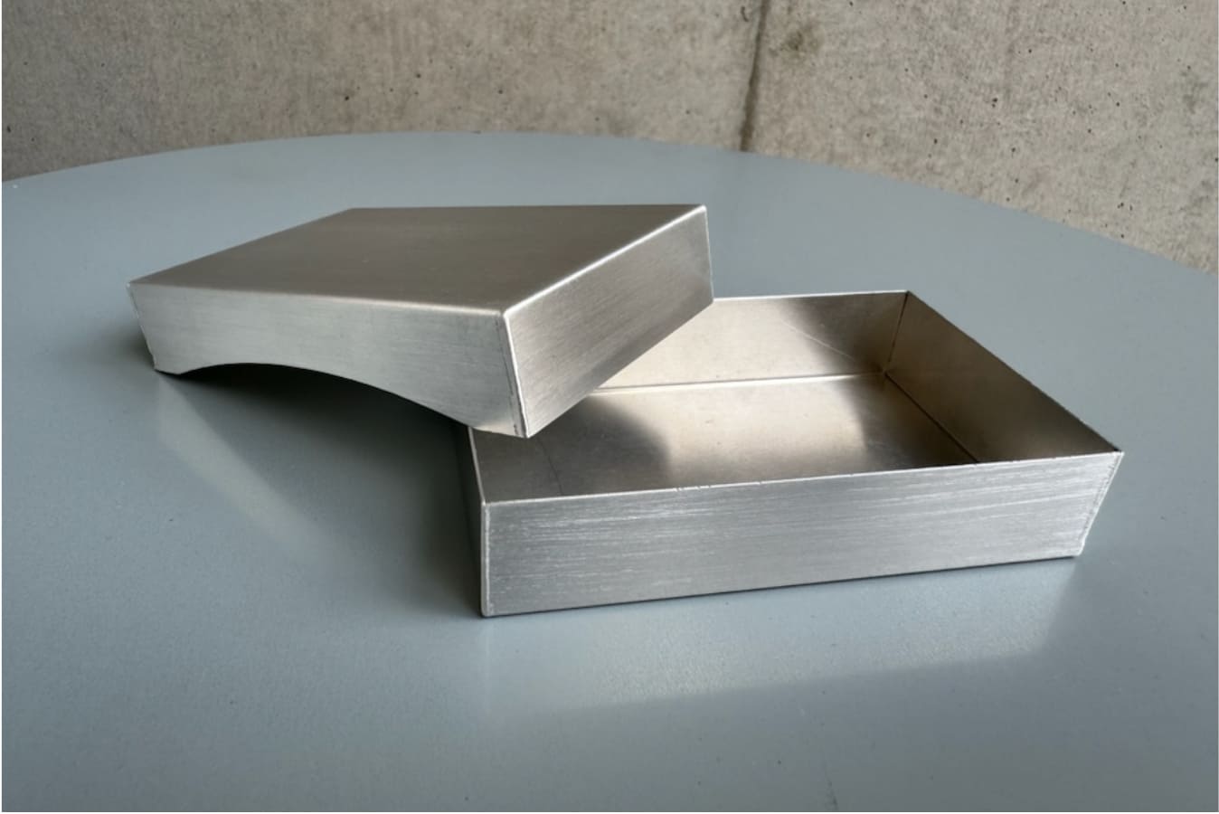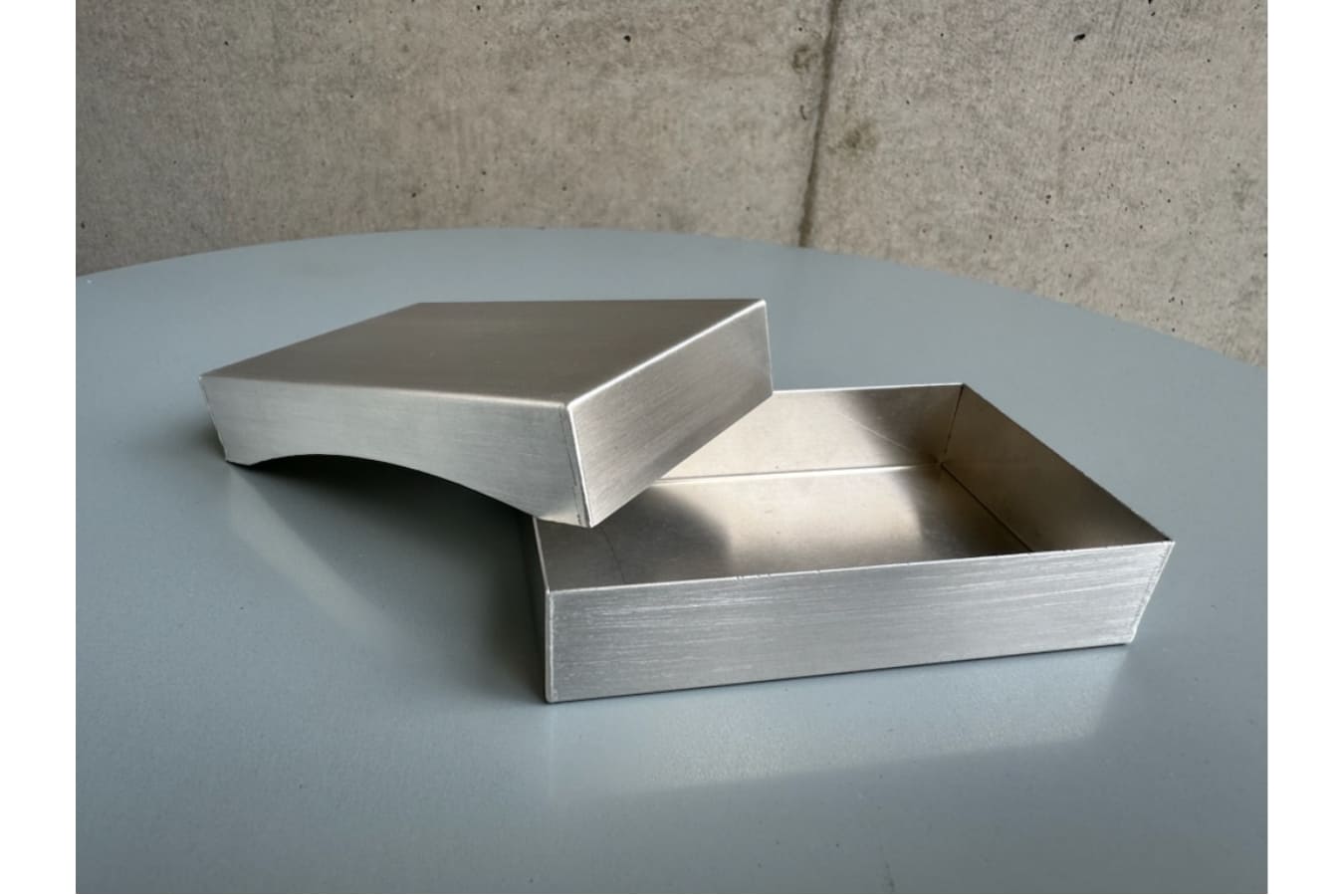 厚さ1.6㎜の鉄素材を使用し、寸法220×120×40㎜で製作。