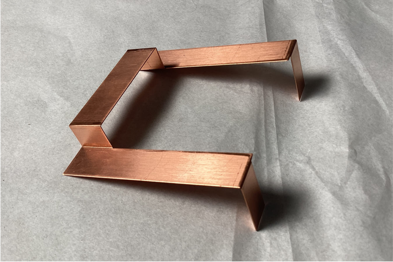 銅板をタレパン加工とベンダー加工によって、精密な形状に成形した製品です。